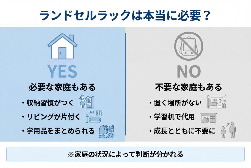 ランドセルラックは便利な収納ですが、すべての家庭に必要というわけではありません。
