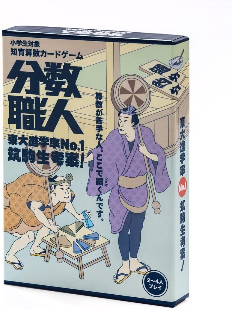 「分数職人」は、東大進学率日本一を誇る筑駒(筑波大学附属駒場)の生徒が開発した、算数の分数を楽しく学べる知育カードゲームです。