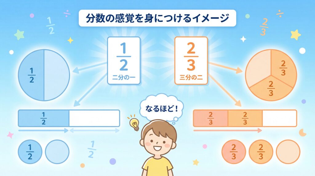 この“感覚で理解する”経験は、後の学習で「分数がわかる!」という自信につながります。