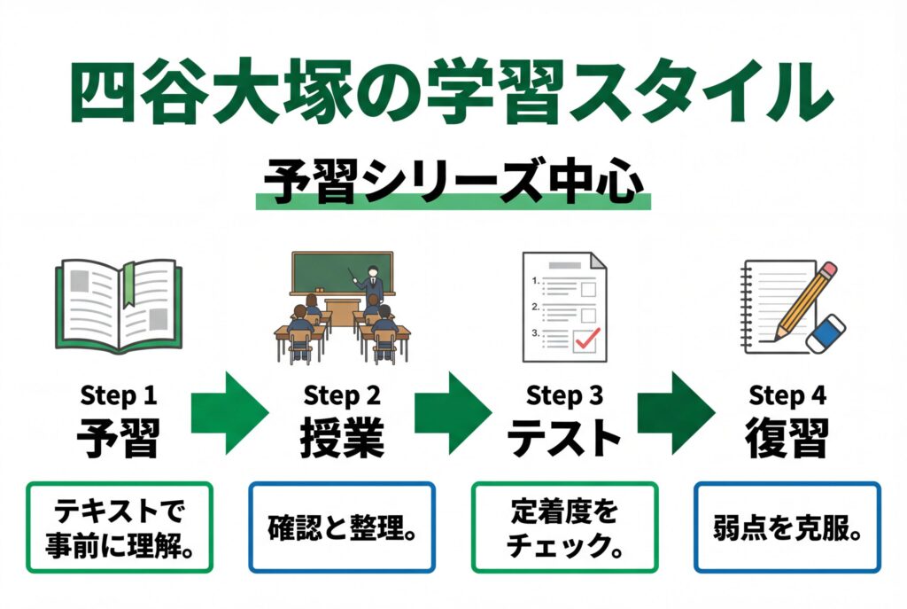 四谷大塚は教材主導型で、予習シリーズを軸に学習が進みます。