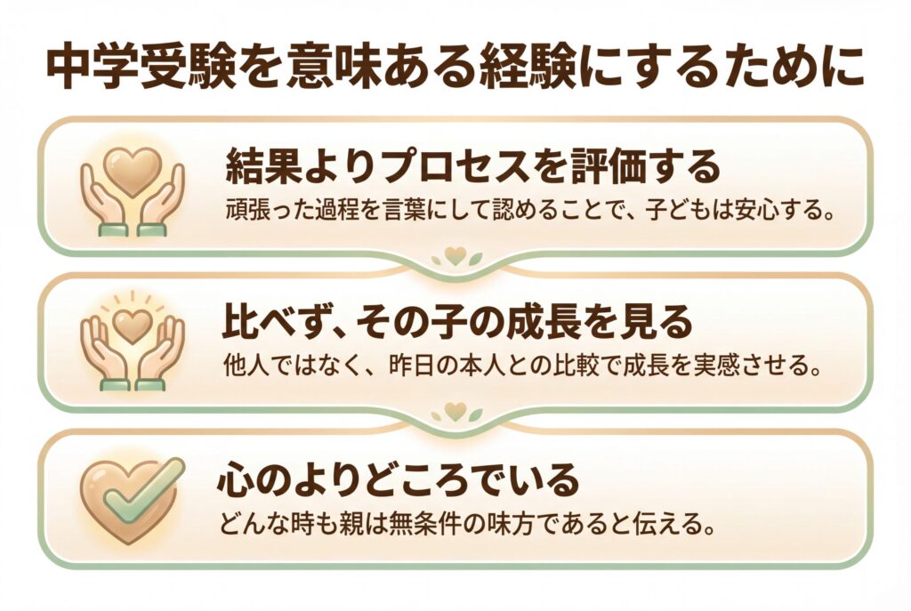 合否に関係なく、「ここまで頑張れたね」と声をかけられる関係性がポイントです。